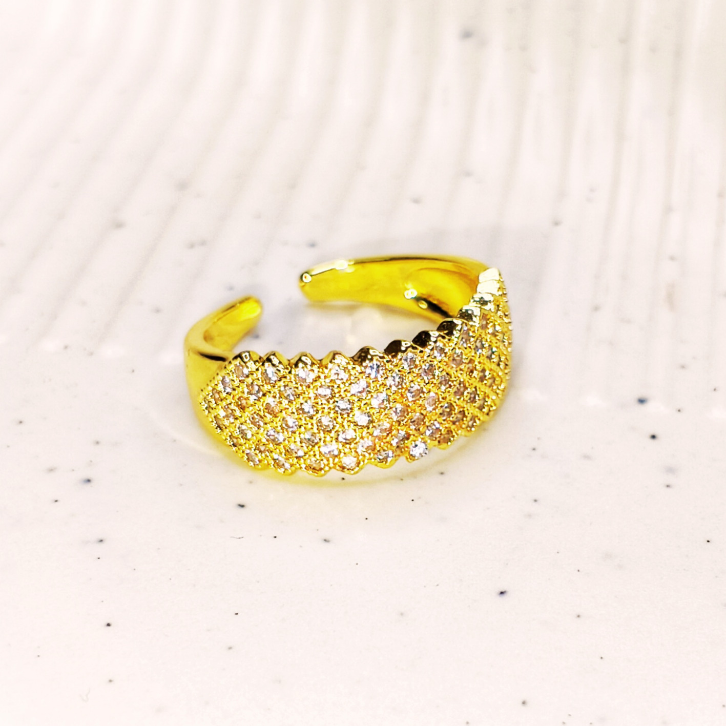 Description: A timeless band fully adorned with delicate pavé-set stones, designed to catch the light from every angle. Elegant, minimal, and perfect for everyday luxury.