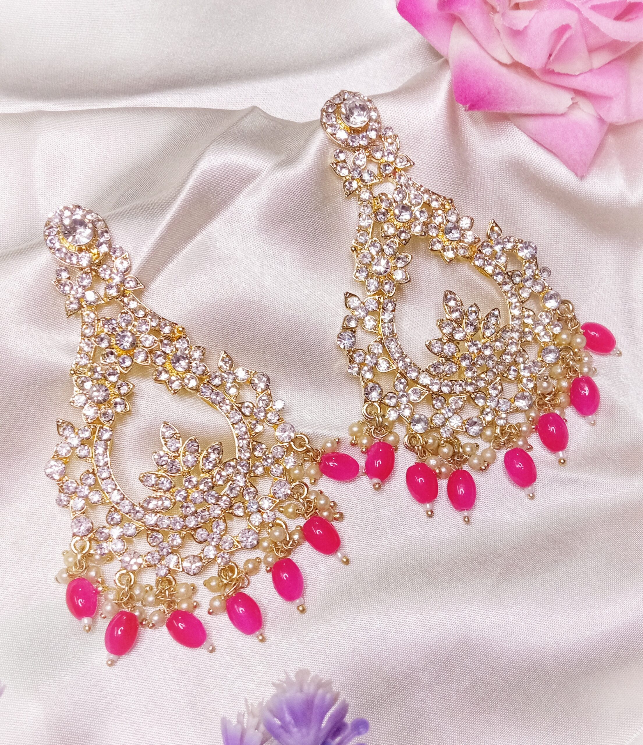 Myza Chandbali Earrings (Ruby Pink)