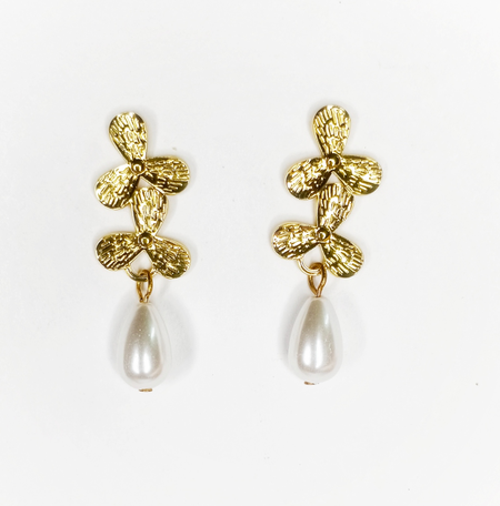 Description: A graceful three-petal floral motif adorned with a drop-shaped pearl, capturing the essence of nature’s purity and elegance. A timeless piece that adds a soft, sophisticated charm to any look.