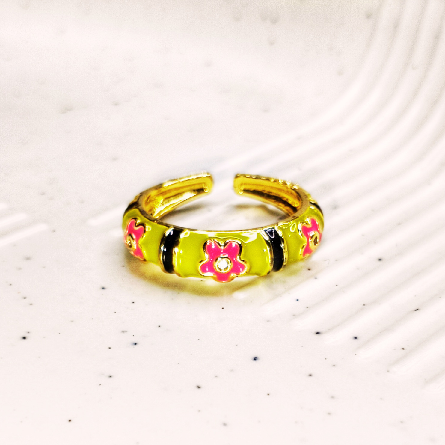 Description: A playful mix of green enamel and tiny pink flowers, made to brighten up your stack. Cute, colorful, and effortlessly eye-catching.