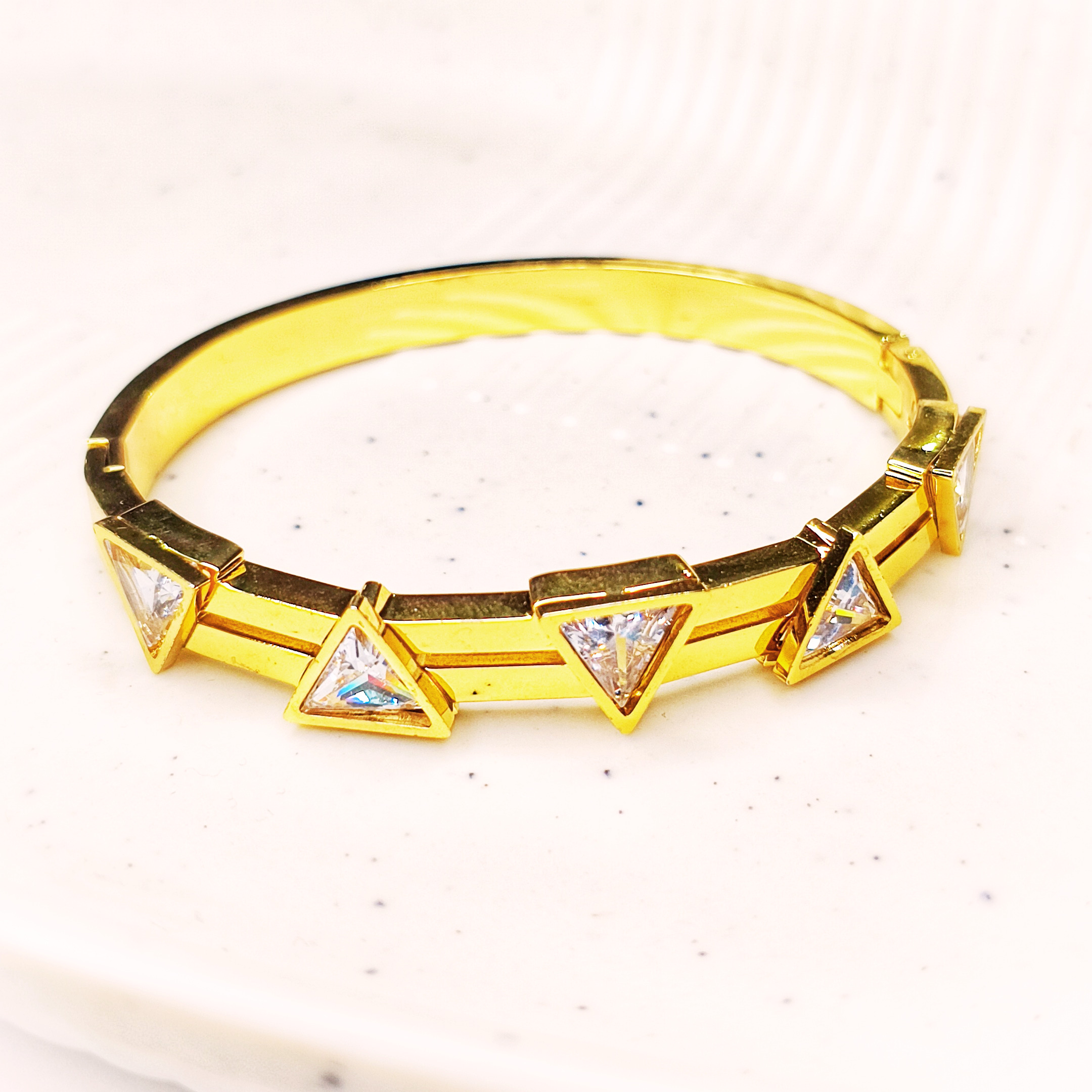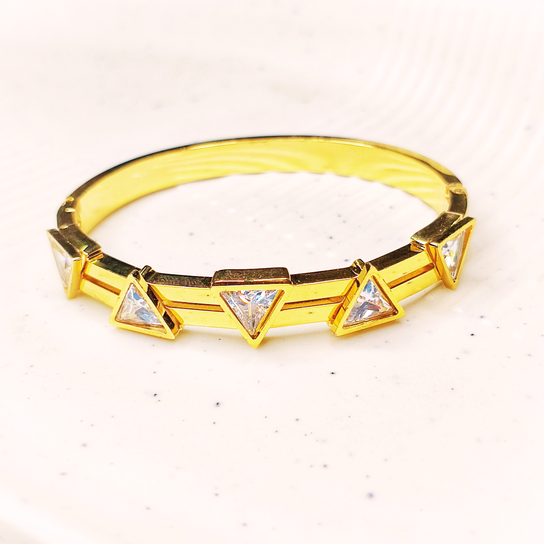 Description: A delicately crafted bracelet featuring triangle-cut stones, designed especially for smaller wrists (2.2–2.4). Minimal, refined, and perfect for an effortless everyday sparkle.