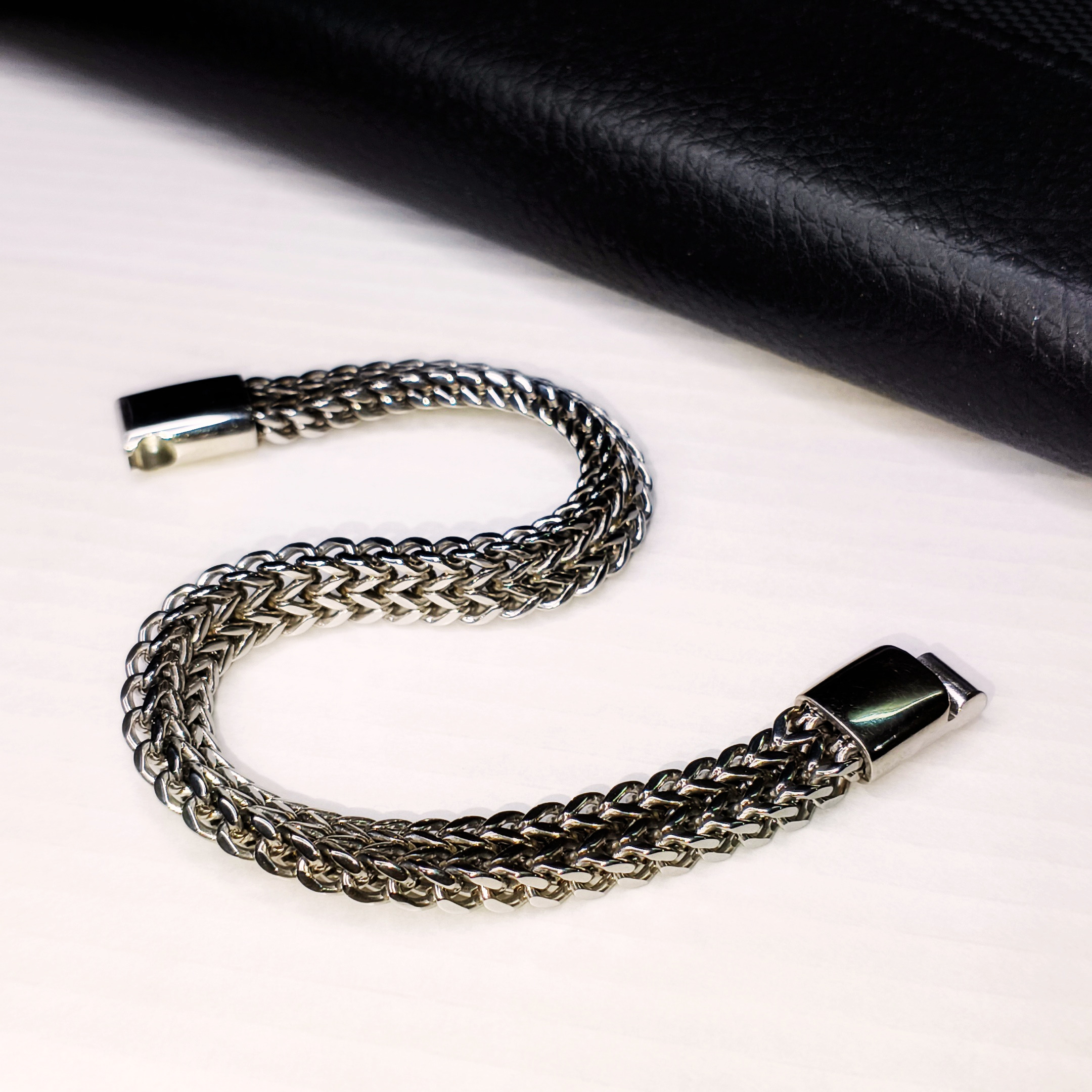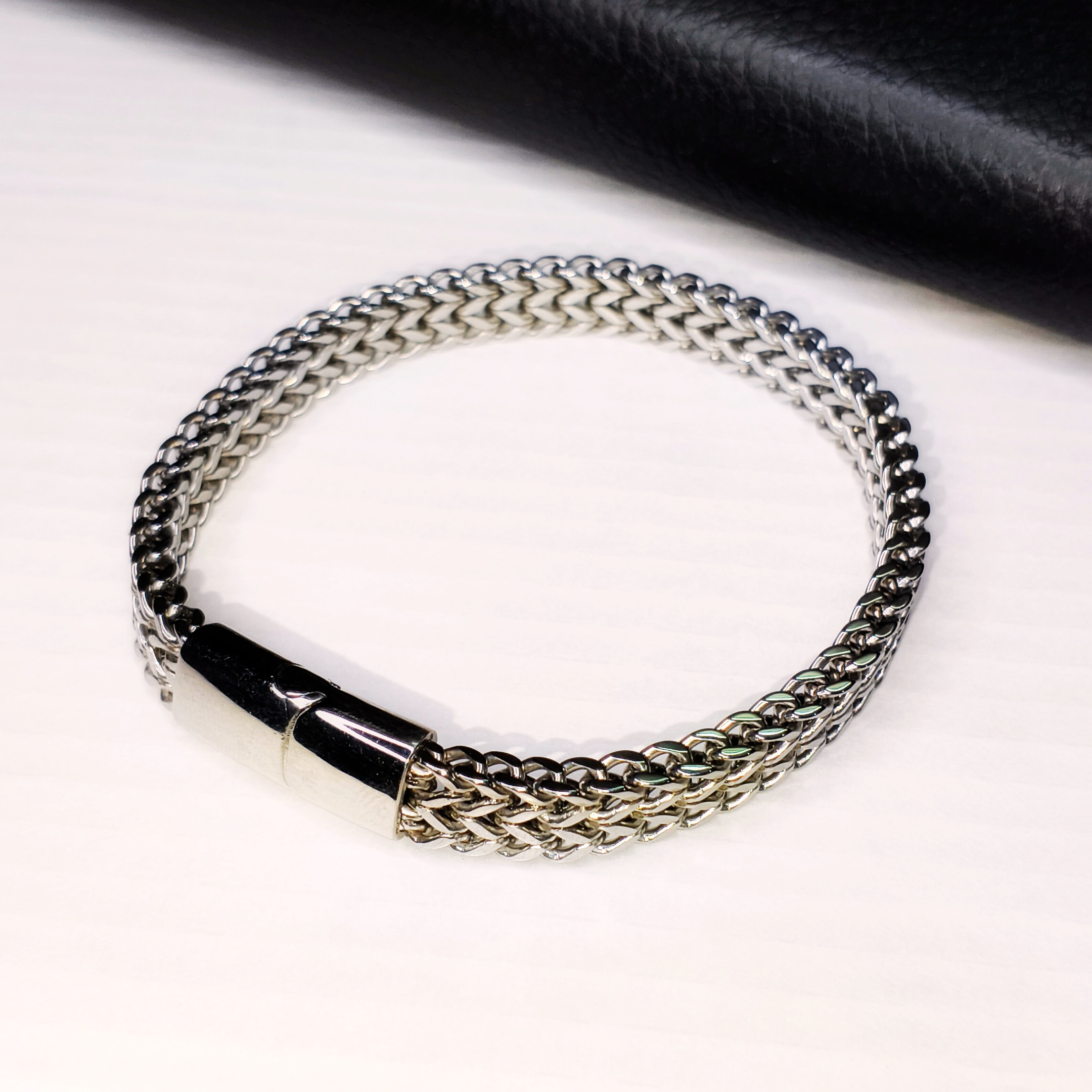 Description: A sleek flat chain bracelet designed with clean lines and finished with a secure magnetic clasp. Minimal, structured, and perfect for everyday wear.