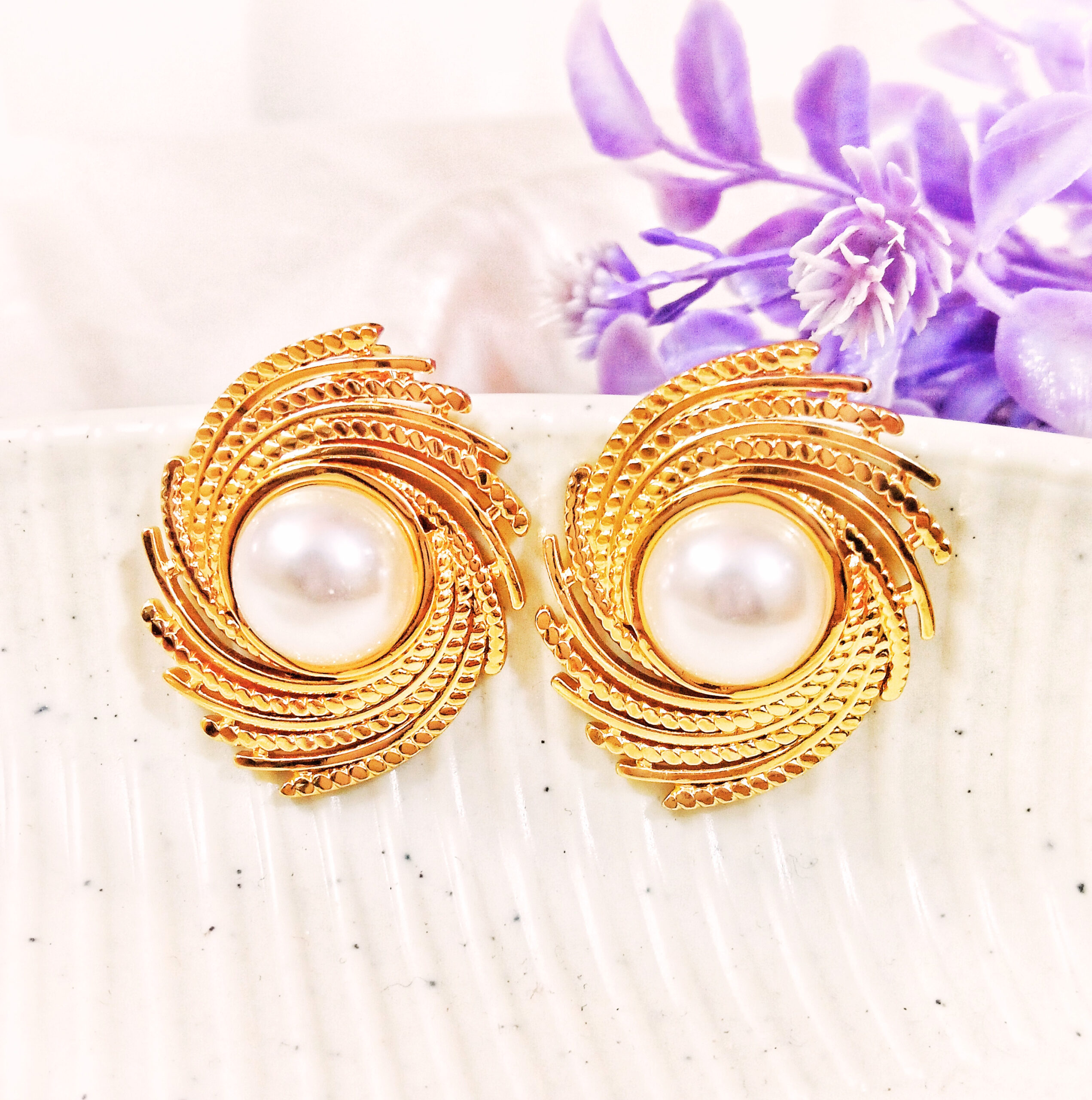 Description:  A mesmerizing swirl design gracefully embracing a luminous pearl at its heart. Symbolizing elegance in motion, this timeless stud adds a refined touch to every look.